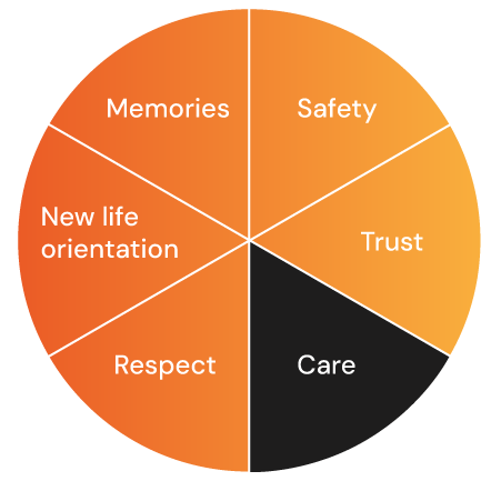 Inter-est is described as “something that lies between people and therefore can relate and bind them together”. In community-based sociotherapy this means to determine how the space between people is used and what attitude is adopted with respect to the other.