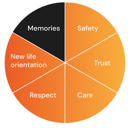 Through this principle, the participants learn in practice, in and with the sociotherapy group, how recurring problems in their own social systems can be understood, handled differently and if necessary be reduced.